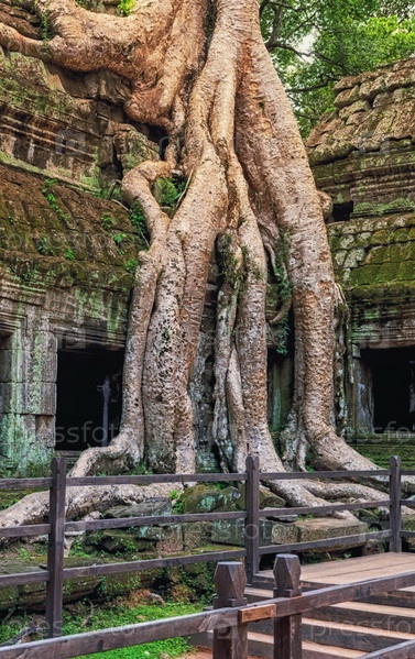 Храм Та Пром, покрытый корнями деревьев, Ангкор-Ват, Камбоджа