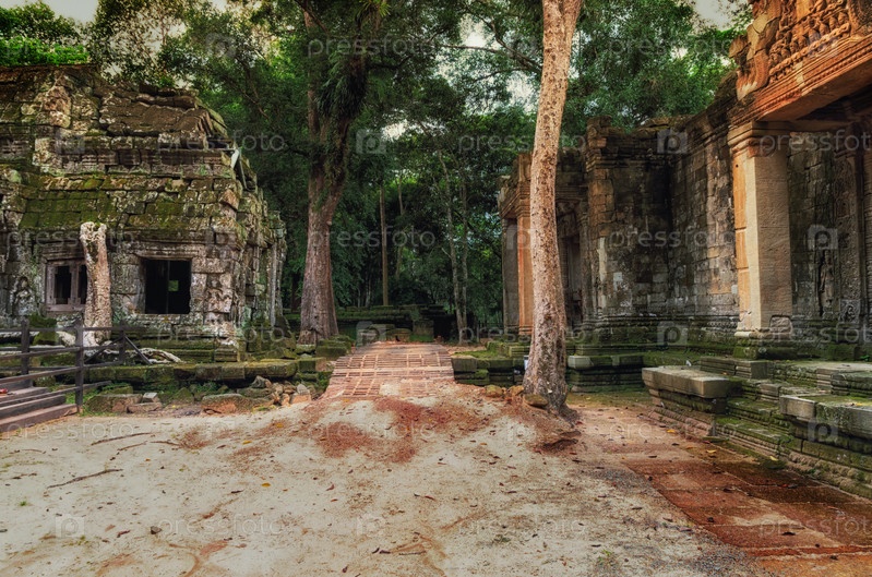 Храм Та Пром, покрытый корнями деревьев, Ангкор-Ват, Камбоджа