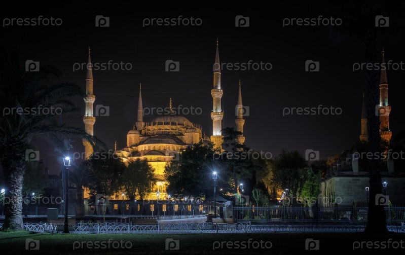 Ночной вид на мечеть Султанахмет или Голубую мечеть в Стамбуле, Турция