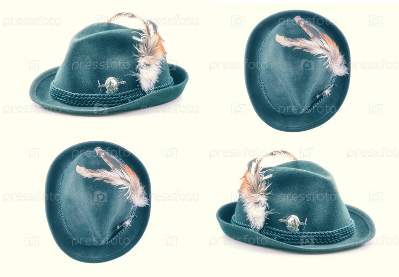 Тирольская шляпа на белом фоне. Винтажная тонировка