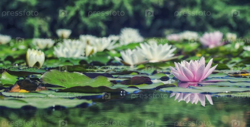Изображение цветка лотоса (кувшинки) на воде