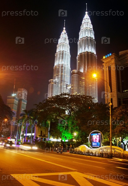 КУАЛА-ЛУМПУР, МАЛАЙЗИЯ - 18 мая: Башни-близнецы Петронас ночью 18 мая 2013 года в Куала-Лумпуре. Башни-близнецы Петронас были самыми высокими зданиями (452 м) в мире с 1998 по 2004 год