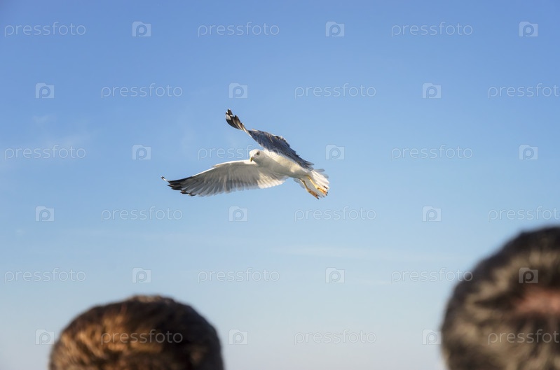 Летающие чайки над морем
