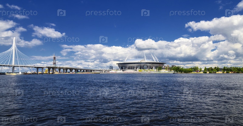Санкт-Петербург, РОССИЯ - 29 июня 2017 г.: Крестовский стадион, Санкт-Петербург. Вид с Финского залива