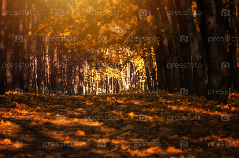 Осень. Сцена падения. Красивый осенний парк. Сцена красоты природы. Осенние деревья и листья