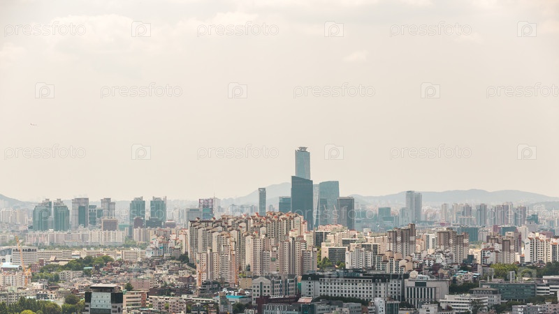 Городской пейзаж Сеула с горы Намсан, Сеул, Южная Корея