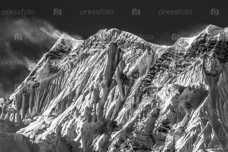 Черно-белые таинственные горы. Утро в Гималаях, Непал, заповедник Аннапурна
