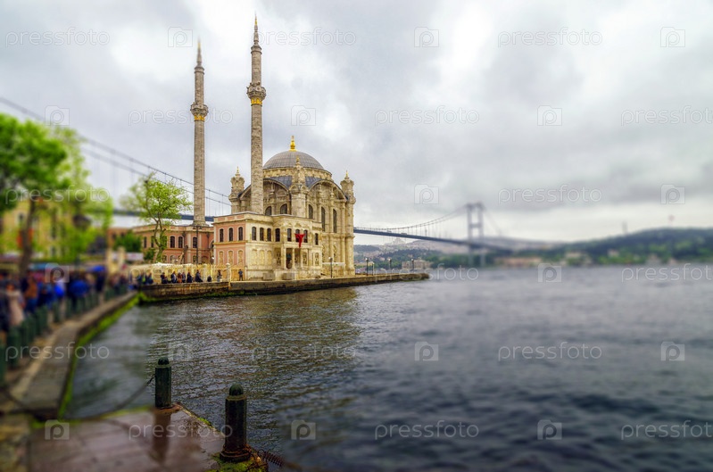 Стамбул. Изображение мечети Ортакей с Босфорским мостом в Стамбуле