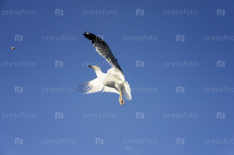 Кормление чаек из рук хлебом