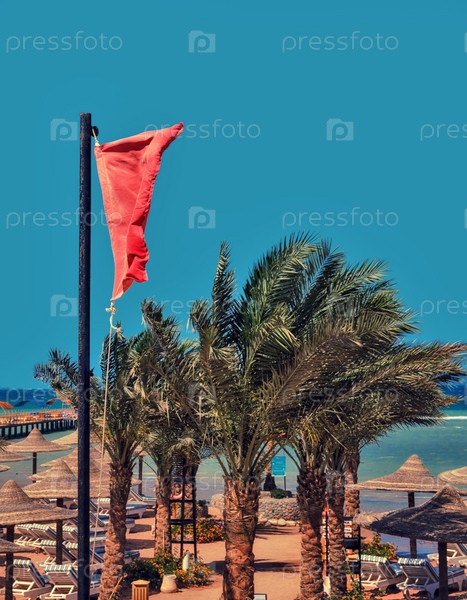Красный предупреждающий флаг на пляже