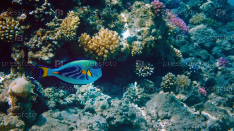 Красочный коралловый риф с экзотическими рыбами Красного моря. Египет
