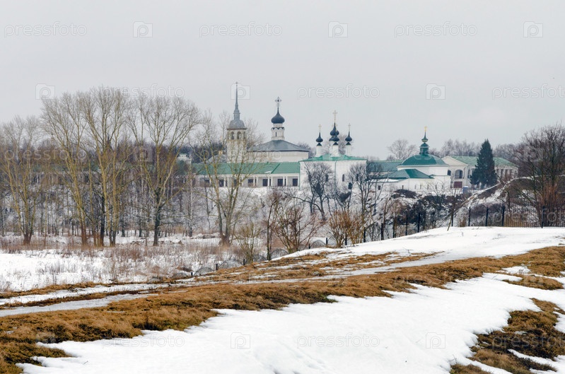 СУЗДАЛЬ, РОССИЯ - 08 марта 2015 г.: Зимний день в российском городе Суздаль. Один из самых популярных городов Золотого кольца