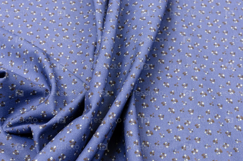 Хлопчатобумажная ткань с мелким цветочным орнаментом на голубом