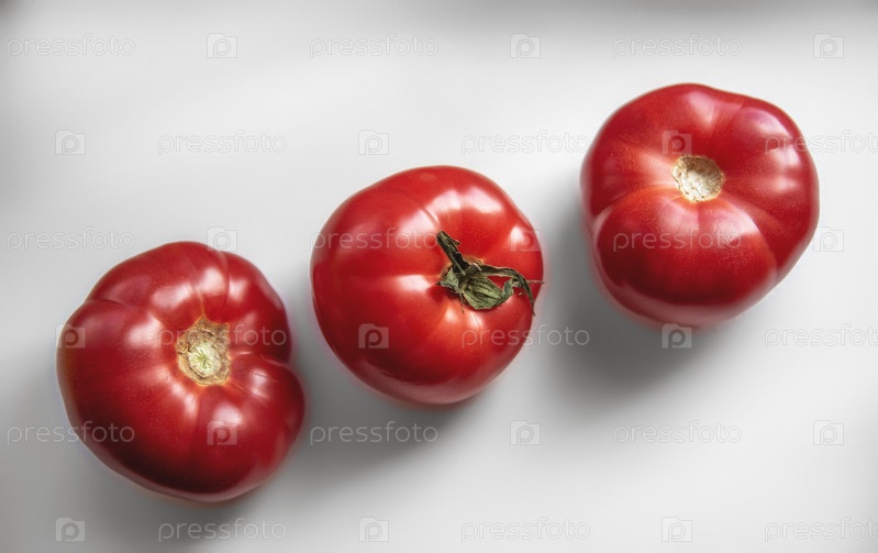 Свежие помидоры на светлом фоне. Сбор помидоров. Копировать пространство