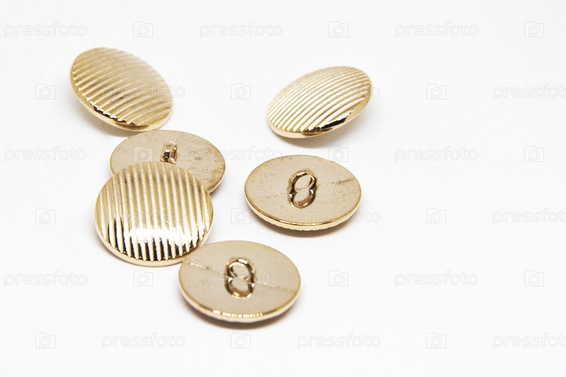 Металлические пуговицы для одежды на белом фоне для концепции Дня пуговиц