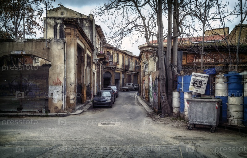 Никосия, Кипр, 21 марта 2017 г.: буферная зона Организации Объединенных Наций (зеленая линия) на Кипре в Никосии