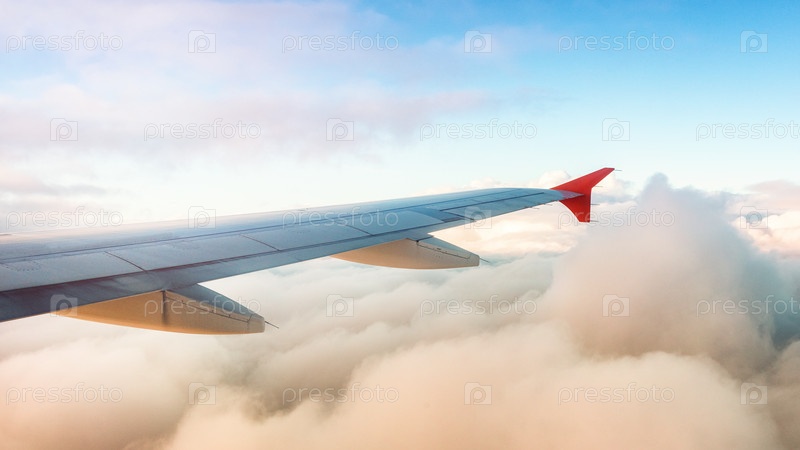 Красивые нежные цвета заката, снятые из окна самолета