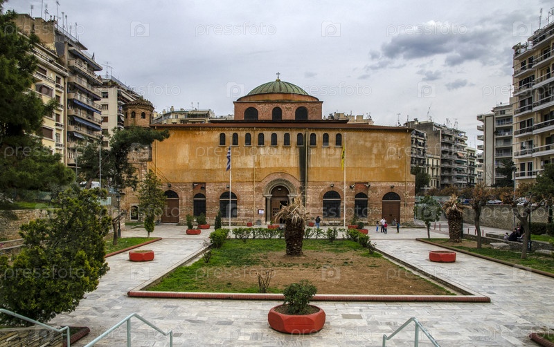 САЛОНИКИ, ГРЕЦИЯ - 26 МАРТА 2017 г.: Древний византийский православный собор Святой Софии в центре города Салоники, Центральная Македония, Греция