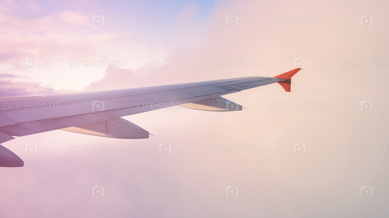 Красивые нежные цвета заката, снятые из окна самолета