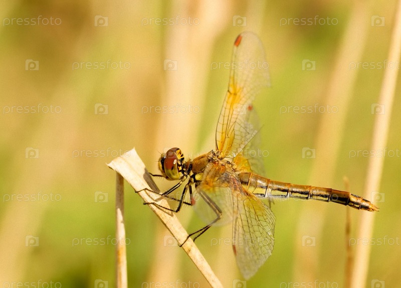 стрекоза сидящая на стебле травы