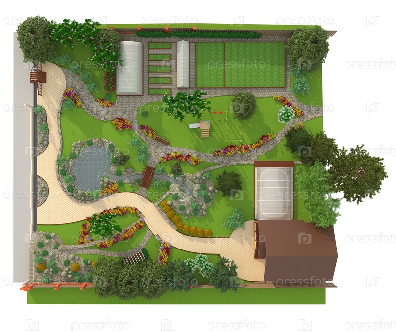 План садового участка. 3д иллюстрация
