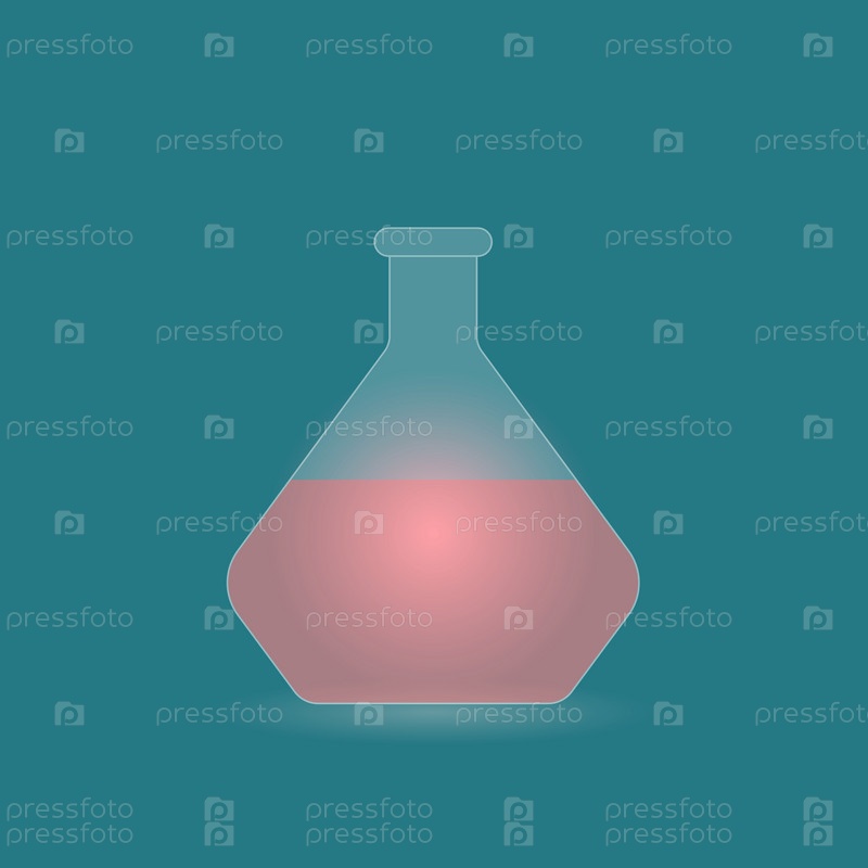 Лабораторная посуда с жидкостью внутри, векторная иллюстрация в стиле глассморфизм