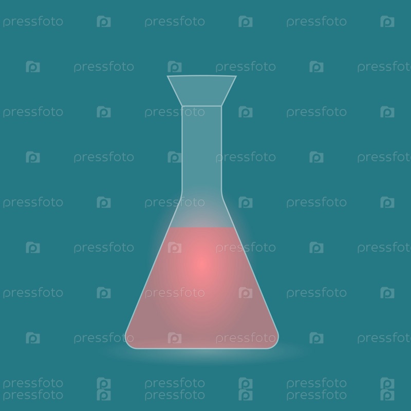 Лабораторная посуда с красной жидкостью на сине-зеленом фоне. Векторная иллюстрация в стиле стекломорфизм