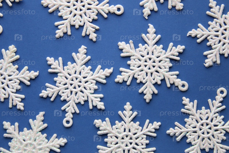 Снежинки на голубом фоне. Зимний фон