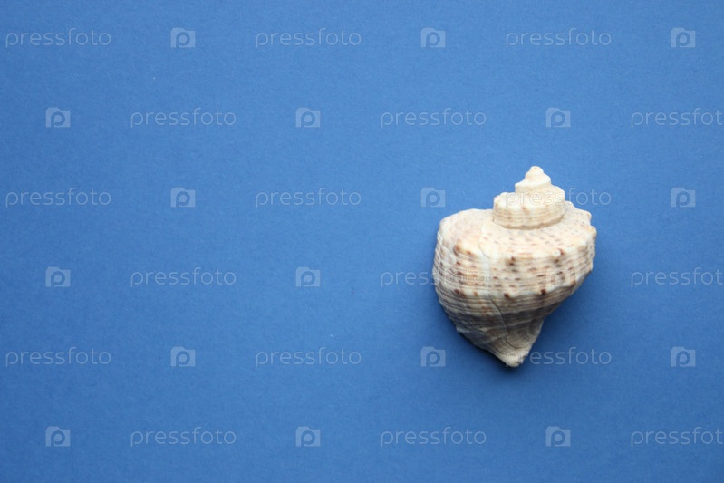 Ракушка на синем фоне. Концепция пляжа