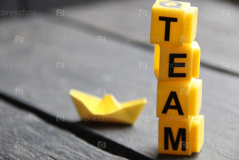 Концепция команды, надпись на желтых кубиках
