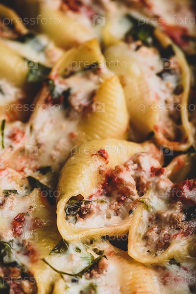 Паста с начинкой из говяжьего фарша, шпината и сыра