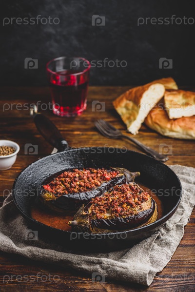 Баклажаны, фаршированные говяжьим фаршем и помидорами