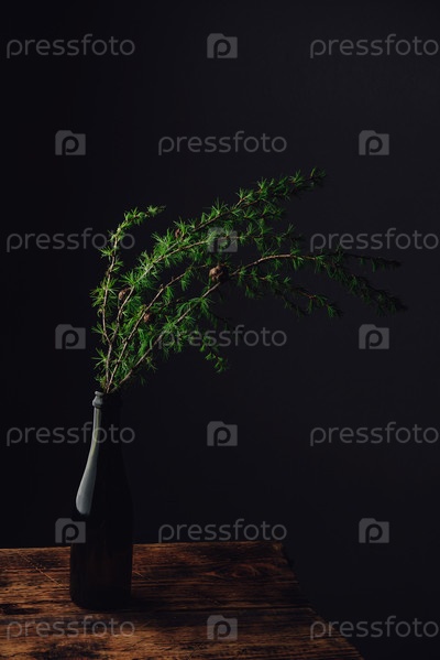 Ветка лиственницы в стеклянной бутылке