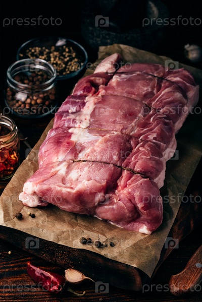 Сырая свиная вырезка с разными специями