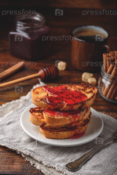 Стопка французских тостов с ягодным сиропом