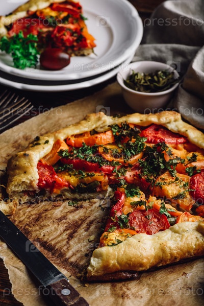 Галетта из нарезанных помидоров на бумаге для выпечки