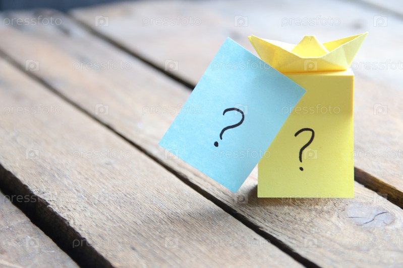 Вопросительные знаки на карточках на деревянном фоне