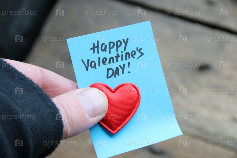 Открытка с днем святого валентина, надпись с синей биркой