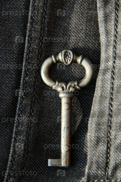 Винтажный ключ на джинсах. Изображение ключевого фона джинсов