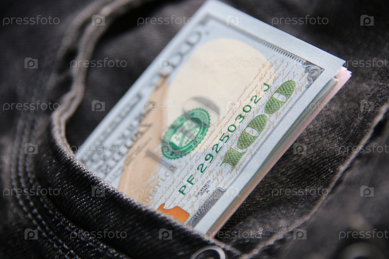 Банкноты долларов США в кармане джинсов