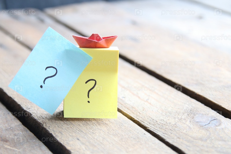Вопросительные знаки на карточках на деревянном фоне