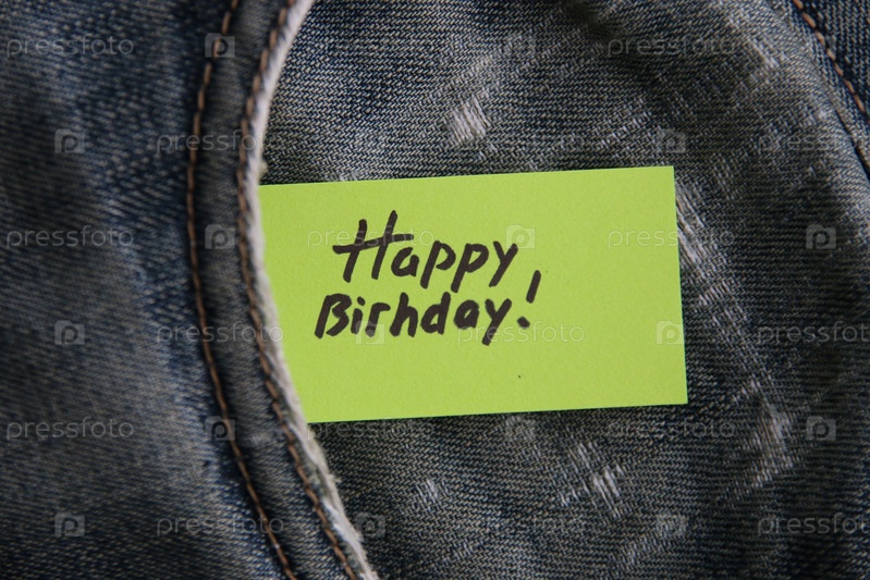 С днем рождения надпись на бумажной бирке в кармане джинсов