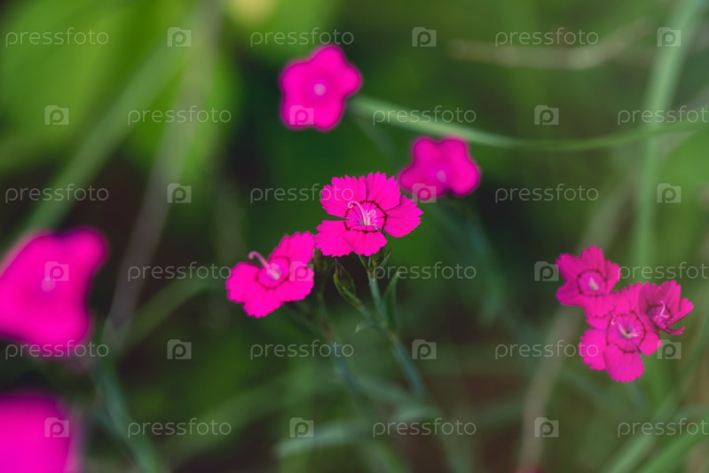 Красивый цветок dianthus deltoides на зеленом фоне. Розовый цветок девственница розовая, пряность, гвоздика трава. Садовое декоративное растение