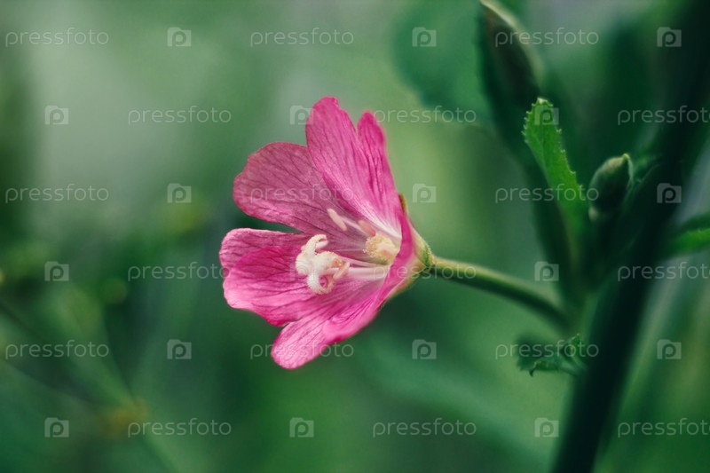 Ярко-розовые цветочные кодлины и сливки, эпилобиум хирсутум, большая волосатая ель, цветящая салли, розовая бухта на зеленом фоне крупный план. Макро. Лекарственное растение. Травяной чай. В солнечный летний день