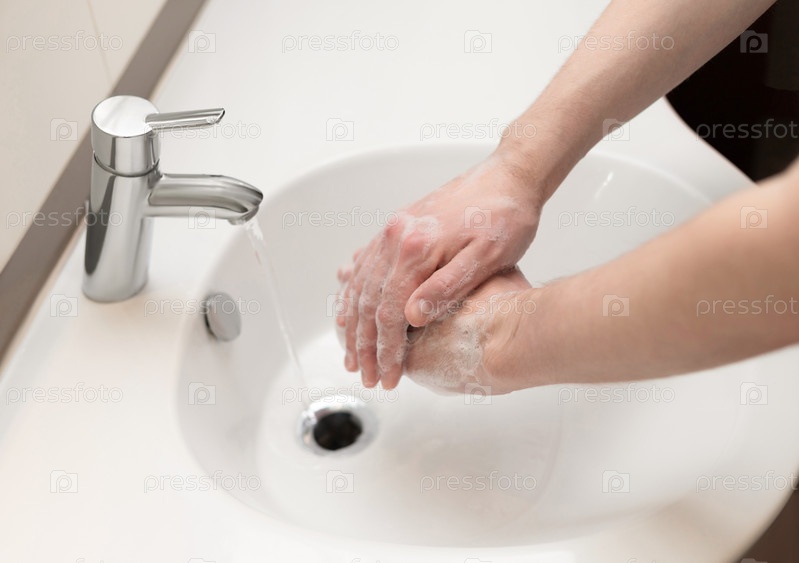 Мытье рук. Мужчина моет руки с мылом крупным планом. Концепция личной гигиены и здравоохранения