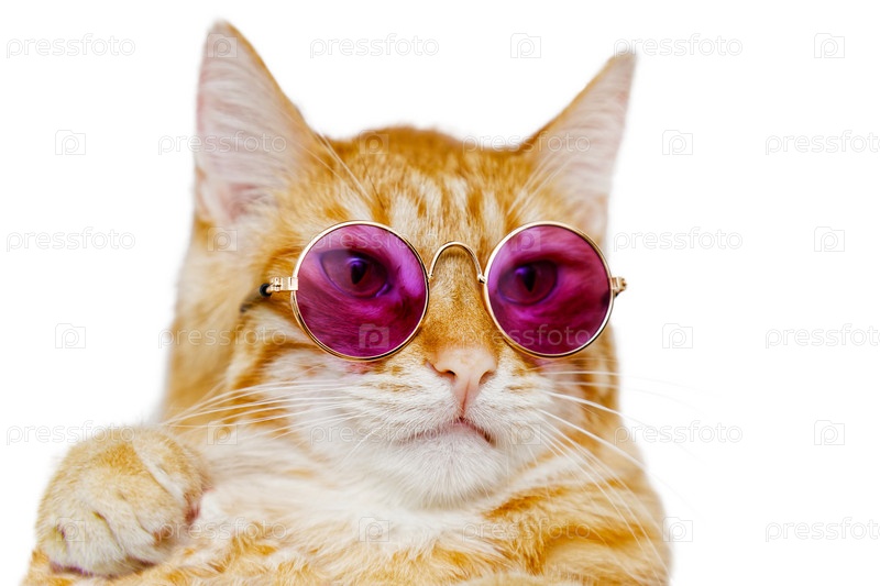Крупным планом портрет смешной рыжей кошки в цветных очках