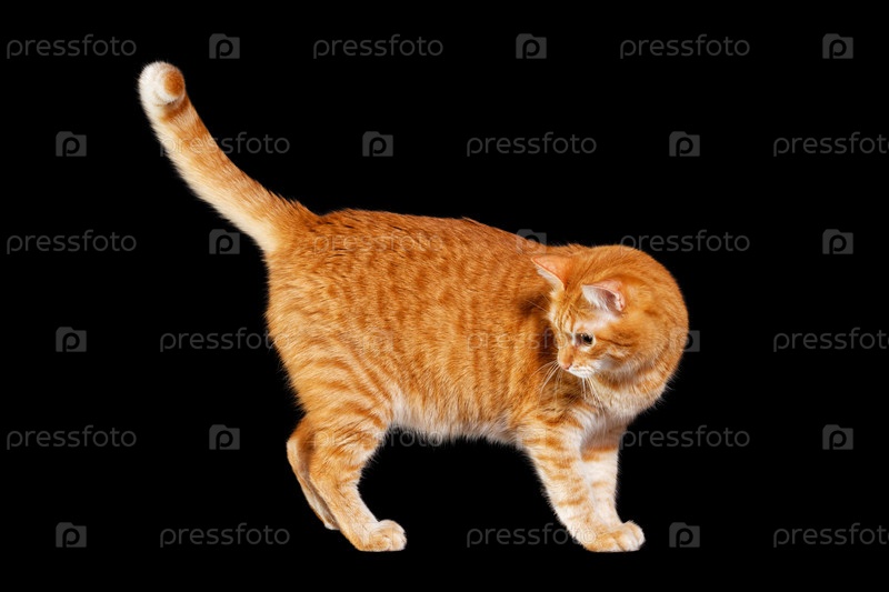 Портрет рыжей кошки на черном фоне. Копипространство