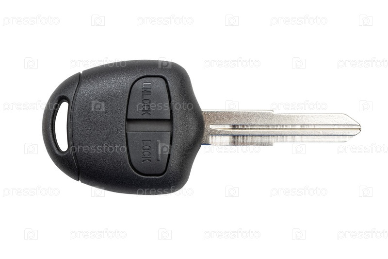 Ключ от машины с кнопками блокировки и разблокировки изолированы на белом