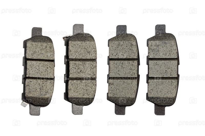 Набор новых тормозных колодок для автомобиля на белом фоне