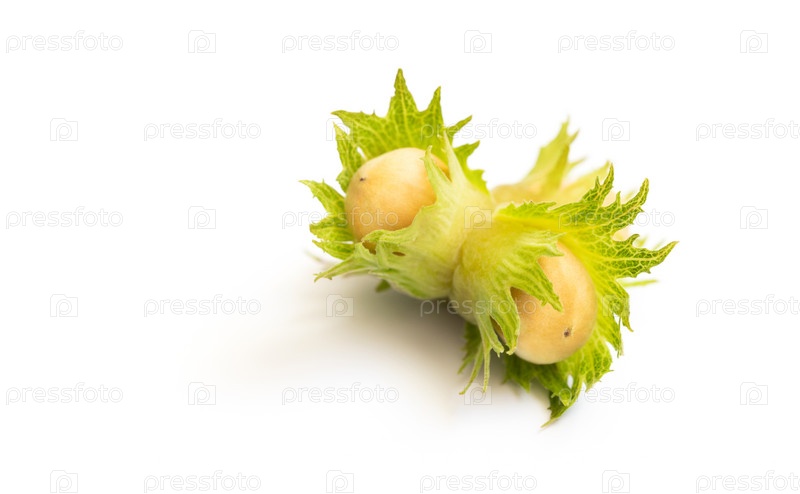 Фундук, изолированные на белом фоне крупным планом. Зеленые неочищенные орехи. Фундук. Скопируйте пространство